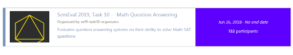 上海脑科学与类脑研究中心认知智能组周熠研究员与科大讯飞智慧教育研究团队及复旦大学自然语言处理团队合作,在2019年2月6号刚落幕的美国高考数学问题自动解答大赛(Math Question Answering)的132支参赛队伍中脱颖而出,夺得总分第一以及代数题、应用题、几何题三个子项目的全部冠军。总准确率达到45%,是其它参赛队伍的两倍以上(名列第二的也是同一团队提交的测试版本)。其中,代数题更是达到了71%的准确率。